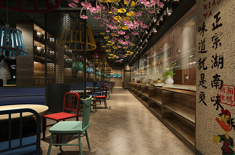 4、裝飾品、雕塑擺件、工藝品、畫藝軟裝。現(xiàn)在的餐廳,主題性越來越強烈鮮明,比如流行的校園烤魚餐廳,喜歡用大量80、90年代的舊電視、鳳凰自行車,表達對時光的追憶;在當下一些更古典的餐廳如桂滿隴等,大量使用小橋流水,輕舟古船、古琴書法藝術等在,江南風格極為鮮明。但成本高昂,偏離餐飲本質(zhì)。品深餐飲設計曾經(jīng)做過的丑小丫湖南菜館,原創(chuàng)設計了丫哥、丫妹造型,并且把這個造型在空間以雕塑形式出現(xiàn),讓消費者合影,軟裝效果很好。