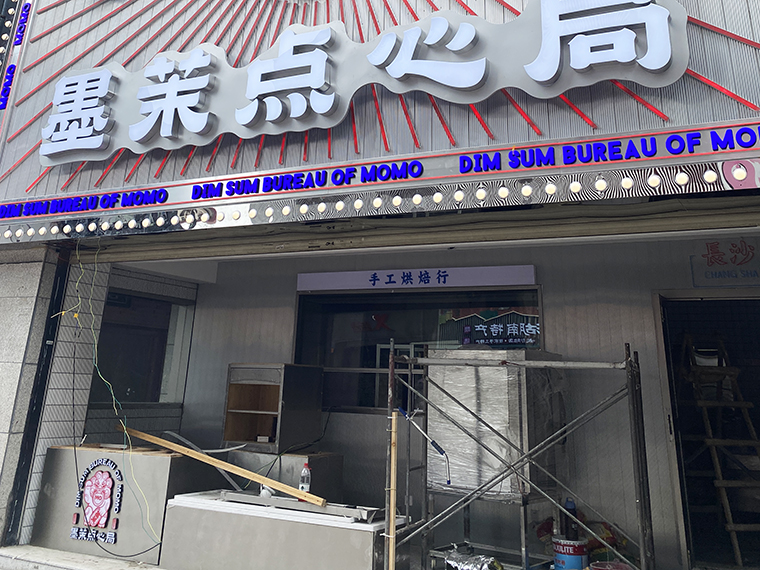 木制工程:餐廳現場做的卡座靠背,異形裝飾,餐廳家私柜,收銀臺、門頭招牌等。