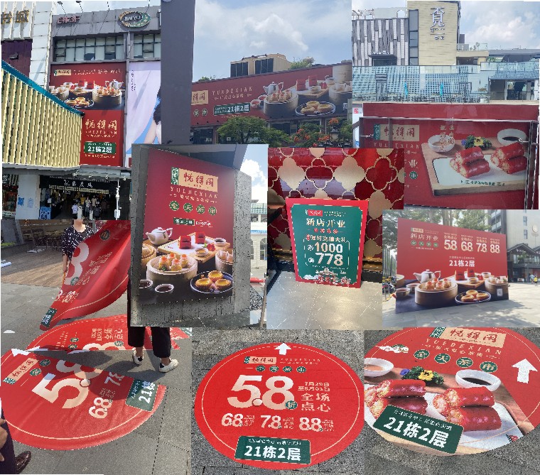 所謂宣傳要全面,就是遵循從顧客知曉我們所有渠道開始進行開業廣告宣傳,如網絡平臺:大眾點評,美團、微信、微博、頭條、抖音、小紅書;大眾媒體如公交廣告、地鐵廣告;門店所在的商場廣告位如商場門口品牌墻、商場戶外廣告、地貼、電梯(樓層導視、電梯內廣告)、扶梯、吊旗、包柱、燈箱、墻體海報、刀旗、吊幔。各種渠道要做到全面覆蓋,如果是商場店則需要在商場周邊上下做到立體式廣告轟炸。