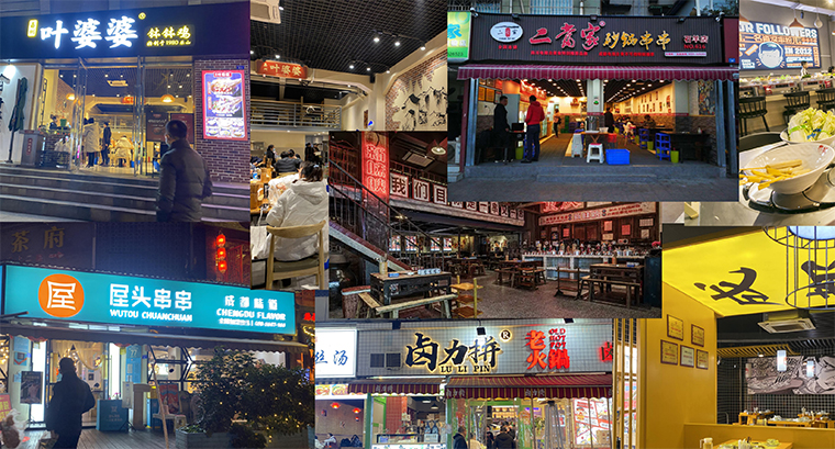 在成都,品深團隊先后實地走訪了鋼管廠五區(qū)小郡肝、花嘴巴、馬路邊邊、洪七公、九街淑芬、二當家等知名的串串火鍋。為了更好的感受串串火鍋現(xiàn)場消費特點,我們特意選擇周日餐飲旺時,周一餐飲閑時在門店蹲守觀察。