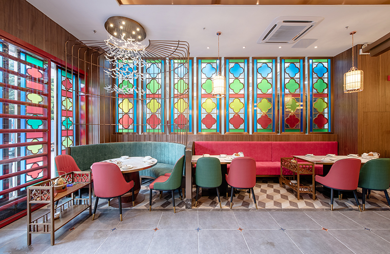 中,我們將廣式花窗大面積使用在正面形象,進(jìn)門(mén)口,包房隔斷等,形成了強(qiáng)烈的視覺(jué)沖擊力,具有鮮明的品牌感。