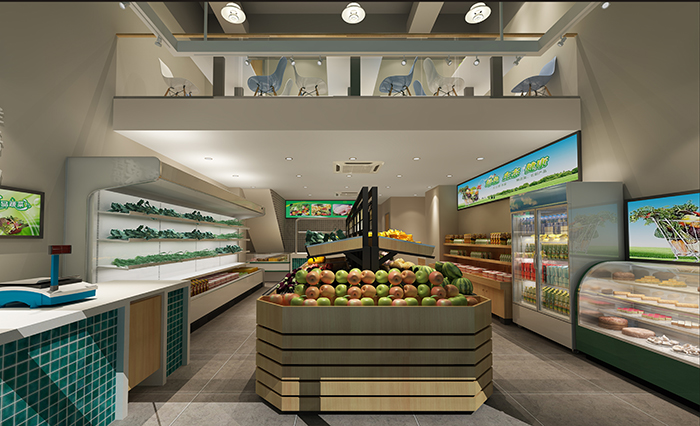 確定了品牌形象,我們開始啟動(dòng)空間形象設(shè)計(jì)。菜菜公社的首家店位于西麗德意名居,這個(gè)小區(qū)靠近地鐵7號(hào)線西麗湖站,小區(qū)入住率非常高,消費(fèi)人群比較高端。菜菜公社的定位是高品質(zhì)生鮮,我們的空間形象核心就是在滿足生鮮店各項(xiàng)功能基礎(chǔ)上,塑造高品質(zhì),互動(dòng)體驗(yàn)的特色。