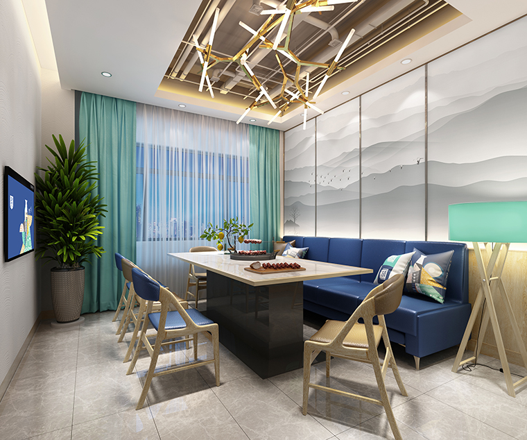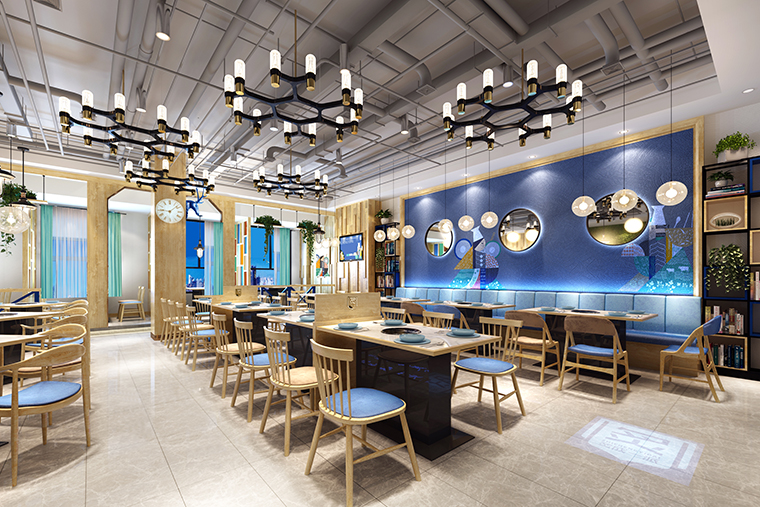 品深餐飲設(shè)計在整個空間裝飾設(shè)計中,我們貫徹“讓消費者能放松心情,享受美食,有情懷,有情調(diào),有趣味”。通過空間中大面積天空藍的使用,與我們傳達的新鮮,干凈、現(xiàn)拌的出品特質(zhì)完美契合,使用藍色刻意營造舒適,純凈的用餐氛圍;