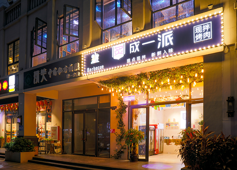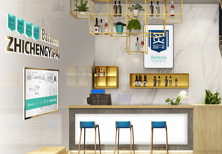 炙成一派是海口一家以現(xiàn)拌現(xiàn)烤為特色的炙子烤肉店。品深餐飲全案策劃設(shè)計認為空間裝飾裝修設(shè)計是品牌形象整體落地的核心環(huán)節(jié)。