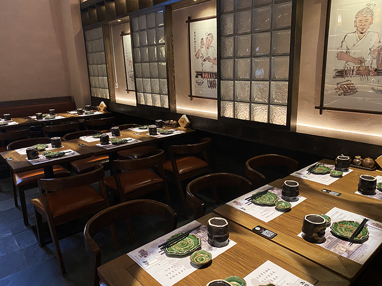 相對(duì)于其他日本料理,溫暖治愈有煙火氣的居酒屋是打開(kāi)心門(mén)的神奇鑰匙。在這里,可以褪下面具,卸下防備,輕松肆意地喝酒聊天,大聲談笑,沒(méi)有職場(chǎng)的煩惱,沒(méi)有生活的瑣碎,有的是伴隨冰涼的鮮啤入喉部之后的片刻歡愉,有的只是一個(gè)釋放自我的放空間。居酒屋的熱鬧感,燒鳥(niǎo)店的煙火氣,京都老店的歷史文化魅力,是品深設(shè)計(jì)團(tuán)隊(duì)重點(diǎn)突破的設(shè)計(jì)表達(dá)。